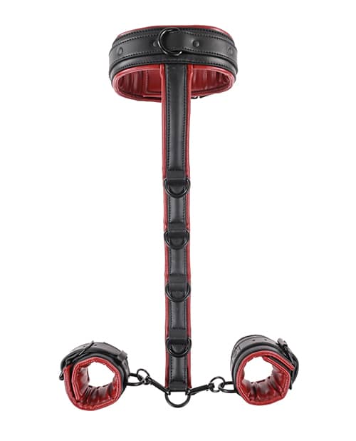 Usa su cuerpo como su propio sistema de sujeción con el Sistema de Sujeción de Cuello y Muñecas Saffron. Coloca la columna vertebral por delante o por detrás de tu pareja y sujeta sus muñecas mientras se somete a las sensaciones. Características: Se integra fácilmente con otros productos con anillas en D. Combina bien con correas y esposas para tobillos para una sumisión completa. El cuero sintético flexible aporta durabilidad para todo tipo de juegos.